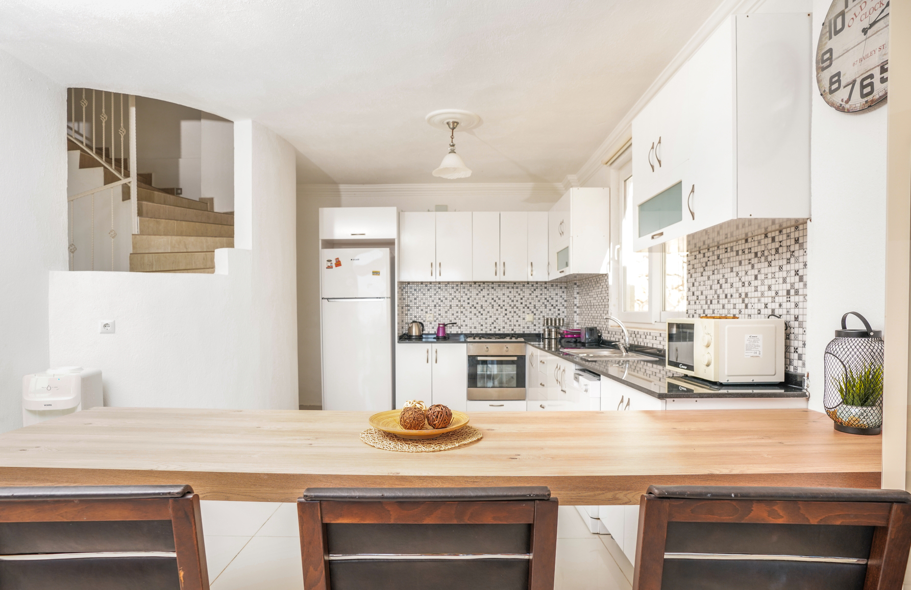 Cook with ease in the sleek American-style kitchen, complete with all the essentials: fridge, dishwasher, washing machine, oven, stove, microwave, kettle, toaster, and more.