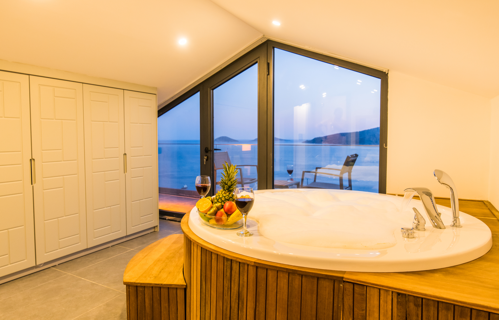 Take in the panoramic views of the bay while enjoying the villa’s private pool and sun terrace.