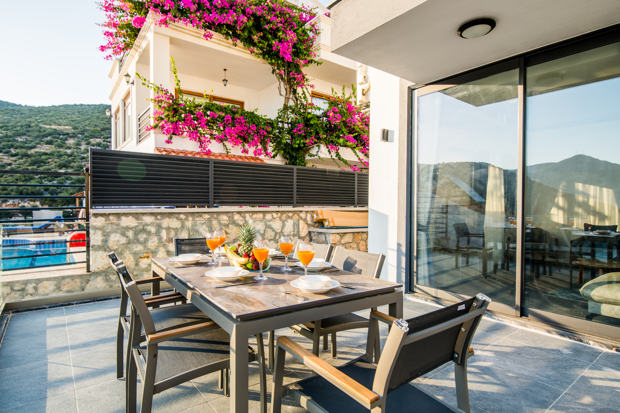 Spacious pool terrace ideal for sunbathing and outdoor dining