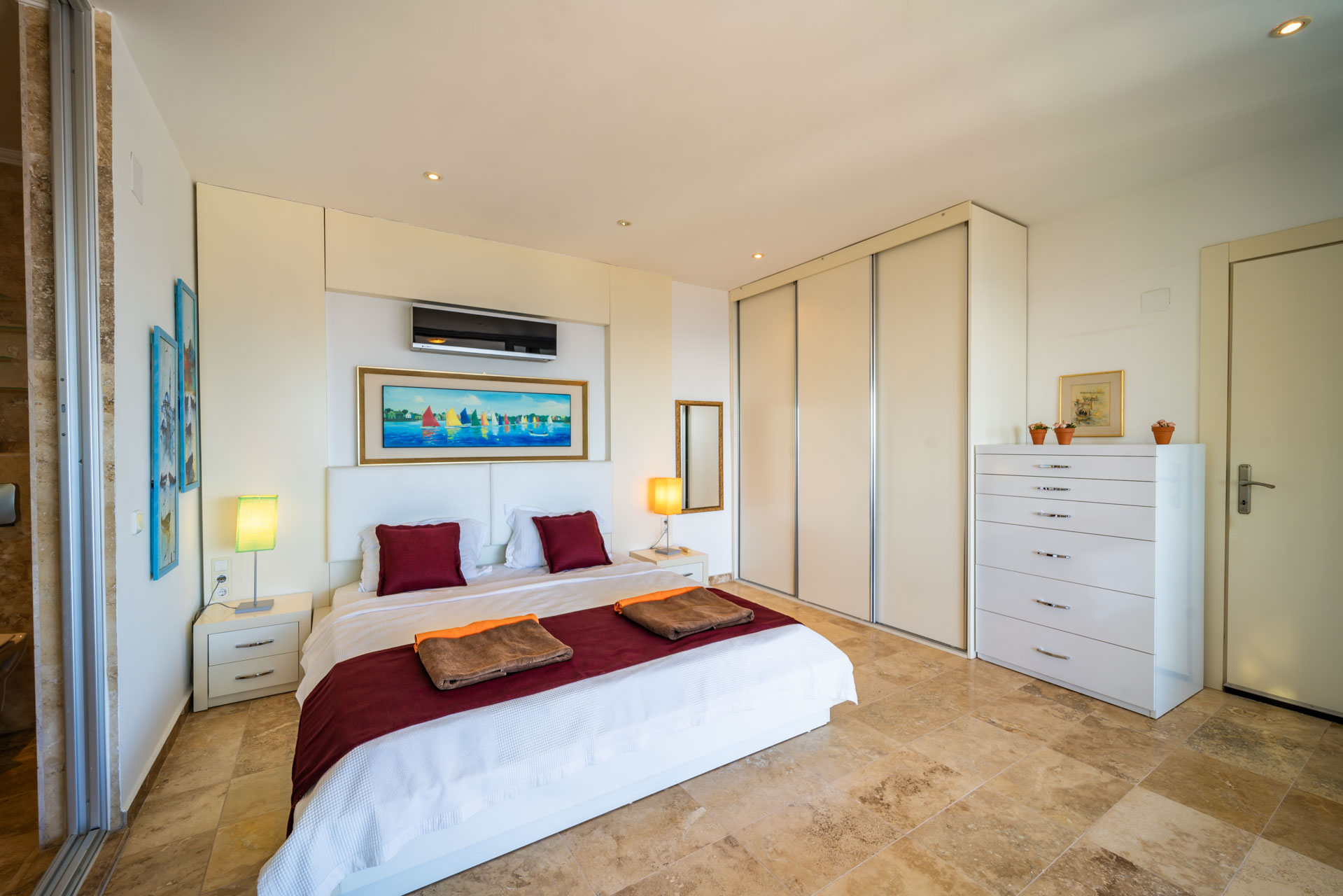 - Bedroom 2: Master bedroom with a double bed, wardrobe, bedside tables, vanity table, air conditioning, and an en-suite bathroom with a toilet.